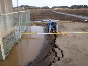 東北地方太平洋沖地震によって変形したパイプラインの程度を調査し、施設の健全度を評価する基礎資料としました。調査内容としては内面調査について、目視、継手間隔調査、可とう管偏心調査、継手漏水試験及びたわみ量調査を行い、管外調査については、目視による調査を行いました。