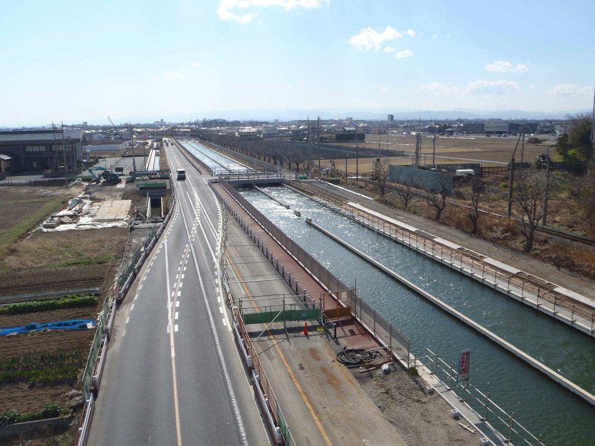 武蔵水路は東京オリンピックを前に水不足解消のため利根川から荒川への導水路および星川・元荒川等の洪水導入を合わせた機能を持つ水路でした。経年の地盤沈下等により流量確保が困難となったことから、当初はシールド工法による改修を計画しましたが2連開水路で提案しました。